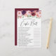 Folha de jogos "quem sabe o casal melhor" com elegantes aquarelas de flores de burgundy, rosa e coral e um roteiro de na moda. Personalize as perguntas e adicione o nome da noiva e a data do chá no verso.
