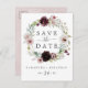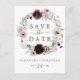 Este romance floral salve o cartão postal do anúncio é perfeito para um casamento elegante. A moderna design do bico rústico apresenta flores românticas a aquarela em tons macios de burgundy, mauve, rosa-pincel e branco-creme com folhas verdes.