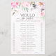 Este jogo de chá de panela divertido é perfeito para adicionar um toque de charme de primavera ao seu dia especial. Apresentando uma bela disposição de florais exuberantes e caligrafia elegante, este jogo "Ela Preferencialmente" convida os convidados a predizer as preferências da noiva sobre uma variedade de questões iluminadas. O jogo inclui uma lista de cenários divertidos e provocadores, encorajando risos e conversas enquanto os convidados tentam adivinhar as respostas da noiva. Com o seu design chic e formato interativo, este jogo é certamente um sucesso com a sua festa noiva e os seus convidados.