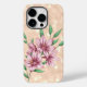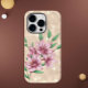 Capa de telefone moderna e feminina com buquê de flores em cor rosa para cada dia de ocasiões. O ouro é simulado.