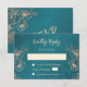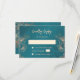 Rose gold floral line art cherry blossoms on a teal background. Matching wedding invitation available.