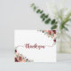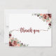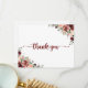 Este cartão de agradecimento de casamento com caligrafia floral de verão rústica é perfeito para um casamento simples. O design apresenta flores em aquarela burgundy, rosa e blush com folhas verdes em um fundo manchado de marrom.
