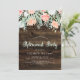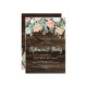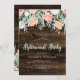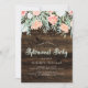 Esses convites de festas de aposentadoria rústicos e modernos apresentam flores de aquarela e folhas em tons suaves de rosa-pincel, pêssego, branco e azul, com um sotaque moderno de pontos falsos de ouro, sobre um fundo de madeira marrom.