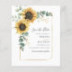 Crie um Sunflower Floral moderno salve o cartão de nota de data com este modelo bonitinho com um belo buquê floral rústico, quadro de efeito de ouro geométrico, com uma tipografia simples moderna. DICA: Cartões de suíte de casamento iguais, como RSVP, programas de casamento, banners, tapeçarias, etiquetas de presentes, placas e outras pegadas de casamento e guloseimas estão disponíveis na coleção abaixo com esta design.