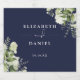 Desenho de casamento floral verde elegante azul marinho personalizado com seus nomes e data de casamento especial. Criado por Thisisnotme©