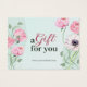 Aprecie seus clientes e aumente sua marca com este belamente projetado certificado de presente, com um fundo verde macio e delicado floral rosa e uma fase doce "Um presente para você". Este certificado é perfeito para as pequenas empresas que procuram oferecer uma forma atenciosa, profissional e elegante para os clientes tratarem os seus entes queridos. Esta elegante certidão de presente é uma bela maneira de oferecer seus serviços como presentes, encorajar negócios repetidos e promover a lealdade à marca. Perfeito para salões, boutiques, compradas feitas à mão, spas e qualquer outra pequena empresa. Torne a oferta fácil e bela com este certificado de presente inspirado na floralidade