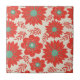 Um único azulejo de cerâmica retrô-vintage com um elegante padrão floral verde-vermelho, combinando estilo botânico e cottagecore para um visual de jardim de tendências, perfeito para férias, outono, outono, verão ou decoração de primavera.