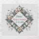 Este rótulo especial de garrafa apresenta um elegante design floral, maravilhosamente enquadrado dentro de uma delicada forma de diamante. Os detalhes das flores e o estilo do eterno deram o tom perfeito para uma celebração memorável e sofisticada de casamento.