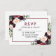 Watercolor Floral Burgundy Marsala Blue - Cartão RSVP de Casamento Azul - Brancos