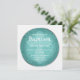 Turquesa quadrada elegante e convites brancos num design redondo com uma marca de água transversal e floral em papel de linho.