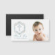 Foto De Bebê Obrigado Baptismo/Magneta De Natal. Este design apresenta uma ilustração da coroa floral e da cruz azul no estilo de aquarela.