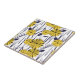 Ilustração perfeita do estilo retrô com flores amarelas e folhas azuis sobre fundo branco