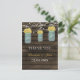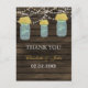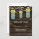 Rustic Barnwood, luzes de cordas balançando com flores amarelas em um casamento Mason jar Obrigado Cartões postais. Produtos correspondentes também disponíveis.
