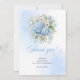 Cartão de agradecimento de casamento Boho com flores de hortênsia azul em aquarela e folhagem de eucalipto, impresso profissionalmente pela Zazzle em papel cartão premium com detalhes nítidos, cor rica e acabamento elegante e liso.
