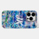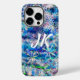 Flores azuis, roxas e brancas abstrato ou capa de telefone em flocos de neve monogramas.
