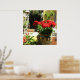 FLORES AZUIS VERMELHOS NO POSTER DE POTE CERÂMICO