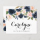 Você será minha dama de honra? Peça à família e aos amigos que façam parte da sua festa de casamento com esta placa de proposta personalizável da dama de honra. Ele apresenta ilustrações de cor d'água de azul marinho, pincel e rosas de pêssego e peônias com acentos verdes. Personalize esta placa de proposta do watercolor bridesmaid adicionando seus próprios detalhes. Este floral será meu cartão de dama de honra é perfeito para qualquer tema de casamento.