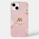 Flores bonito monogramas fotografia fofa cor-de-rosa no caso Xmas-mate iphone 14.