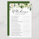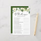 Quem sabe melhor da noiva? Responda a essas perguntas para descobrir! | Adicione esses cartões de jogo de chá de panela divertidos e brincalhões ao seu evento. Este cartão de jogo "Quem Sabe Melhor da Noiva" personalizável apresenta ilustrações de aquarela de flores brancas e folhagens. Personalize adicionando suas perguntas. Este cartão de jogo de adivinhação de chá de panela floral branco é perfeito para chás de panela de inverno e primavera e chás de panela de casamento.