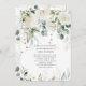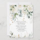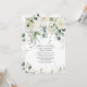 O convite para o casamento mostra um arranjo floral delicado com rosas brancos e creme, hidrangeas e verde-luxuoso, acentuado por sutis destaques do ouro. As flores e a folhagem são pintadas em estilo aquoso, criando uma elegante e eterno estética. O esquema central é equilibrado, com uma composição estruturada, mas graciosa, que complementa o tema geral. A design exude sofisticação, fazer perfeito para uma celebração romântica. Fácil de personalizar com suas informações.