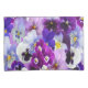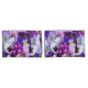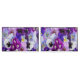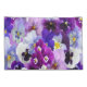 Uma capas travesseiro floral azul púrpura e branca.