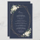 Adicione um toque pessoal à celebração do seu chá de panela com estes itens de na moda e festa memoráveis! Design apresenta flores brancas de aquarela, verde e estrutura dourada sobre fundo azul marinho.