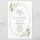 Adicione um toque pessoal à sua celebração de casamento com estes itens de na moda e festa memoráveis! Design apresenta flores brancas de aquarela, verde e estrutura dourada sobre fundo branco.