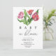 Um buquê de flores vermelhas é pintado em aquarela. Uma bela coleção elegante para um chá de fraldas de verão.