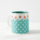 Ilustrado com flores e morangos do kawaii em uma cerceta e em um fundo branco das bolinhas esta caneca trará um bom sentimento por suas manhãs e uma decoração bonito a sua cozinha!