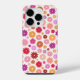 Padrão de flores coloridas em amarelo, laranja, rosa, lilás e vermelho em um fundo de cor creme.