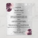 Um elegante e glamouroso menu de casamento. Fundo de aspecto fino prateado, decorado com brilho sujo, faíscas, burgundy e flores cor-de-rosa. 1 folha = 1 menu impresso borda a borda