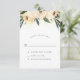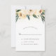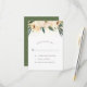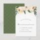 Um lindo design de RSVP com tipografia elegante e uma borda de flores de aquarela rosa. Atrás das flores há uma imagem de confetes dourados. Estes cartões invertem para um padrão branco simples em um fundo verde.