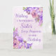 Cartão de aniversário para irmã com flores de aquarela roxas e verso atencioso.