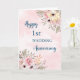Feliz cartão de aniversário de casamento de 1rua com lindos padrões de flores cor-de-água rosa e verso sentimental.