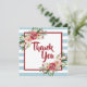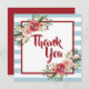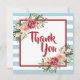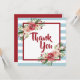 Cartões de agradecimentos de natal moderno com design de cor d'água com flores de inverno e fundo de listras azuis.