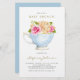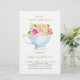Junte-se a nós para uma festa de chá! Convide a família e os amigos para o seu evento com este convite personalizável para o bebê brunch. Apresenta a ilustração aquarela de uma equipe com um buquê rosa. Personalize adicionando seus detalhes. Este convite floral para o bebê é perfeito para eventos de primavera e jardim.