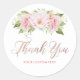 Agradeço o adesivo de etiqueta com flores cor-de-água rosa-claro e cor-de-rosa e rosa e texto rosa. Perfeito para um primavera ou chá de fraldas de verão ou casamento de temas vintage.