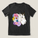 Um retrato de perfil lateral de uma cabra branca de montanha, flores selvagens estão em volta da cabra montada, desenhadas no estilo da tatuagem em pano de fundo de azul