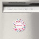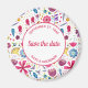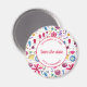Uma pintura aquosa de flores e folhas em cores ricas espalhadas em fundo branco. Um belo coordenador de Imã salve o dia como um lembrete útil para seus convidados. Mude o texto para se adequar à sua celebração.