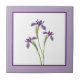 Este simples, mínimo, design botânico floral apresenta um pequeno buquê de três lindas, altamente realistas, flores roxas e azuis da íris de aquarela em um fundo branco de borda púrpura, cercado por uma adorável fronteira de lavanda pastel. Este item faz uma adição elegante ao seu decoro doméstico.