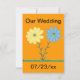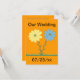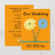 A pintura de flores amarelas e azuis margaridas e grama verde, com espaços reservados para informações sobre o casamento, é impressa em dois convites laterais. Os detalhes são fáceis de personalizar nos formulários de modelo. A cor de fundo também pode ser personalizada.