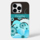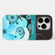 Hibiscus: Blue © Sunny Mars Designs. Cobrir de capas de iphone floral elegante, moderno, chic, giro, elegante, na moda elegante e personalizado, com azul-aqua bonito, azul-lacre, turquesa e design de flor de hibisco brilhante esticada. Personalize-o adicionando seu próprio nome ou outro texto nele.