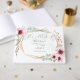 LIVRO DE VISITAS | Moldura de estilo Terrarium com flores de primavera em folhas verdes de eucalipto cor-de-rosa e sage-claro ao redor da moldura. Uma combinação de caligrafia de script combinada com um layout de texto minimalista e contemporâneo faz dele um pacote de casamento de estilo de tendência. Design criado para TheBarefootBride™ por © WhimsicalArtwork™. Esta é parte de uma coleção de artigos de papelaria de casamento com acessórios de casamento iguais também chá de fraldas e outros artigos de papelaria de ocasião. Fique à vontade para nos contactar se precisar de ajuda.