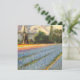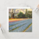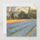 Cartão n.o 2 de 3 Países Baixos, flores paisagísticas de campo, com moinhos de vento pintando triptych fino, painel 2 de 3 cartas de convite para impressão, com ícones coloridos azuis, tulipas e flores amarelas daffodils narciso e um moinho de vento holandês.