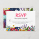 Cartão RSVP de casamento brilhante e colorido com flores silvestres, e a palavra RSVP em rosa brilhante. Isto corresponde ao nosso convite de casamento "Bright Colorful Summer Flowers".