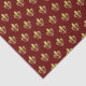 Um papel de tecido clássico, inspirado em francês, embrulha com ouro metálico Fleurs-de-lys num padrão repetido num fundo vermelho escuro.