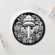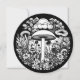 Arte retrô com cogumelos de linhagem negra e branca e flores, arte botânica.
