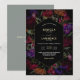 Anuncie sua celebração com este convite de casamento preto com flores coloridas e sombrio, projetado para capturar a beleza dramática e a elegância floral vibrante. Um fundo preto profundo cria um cenário ousado e luxuoso, enquanto flores ricamente coloridas trazem profundidade, contraste e estilo artístico ao design. As flores vívidas criam uma composição impressionante que parece romântica, expressiva e refinada. A tipografia elegante completa o layout, dando ao convite uma aparência sofisticada e equilibrada. Perfeito para casais que planejam uma celebração noturna dramática, cerimônia artística ou tema floral ricamente estilizado, este convite apresenta o seu casamento com cor ousada, atmosfera romântica e impacto visual inesquecível.