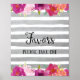 Poster impressão para favoriar a placa de casamento com flores design e falso fundo de listras prateadas.