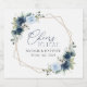 Adicione um toque pessoal à sua celebração de casamento com estes itens de na moda e festa memoráveis! Design apresenta flores marinhos e azuis de cor d'água, tela verde e estrutura dourada sobre fundo branco.